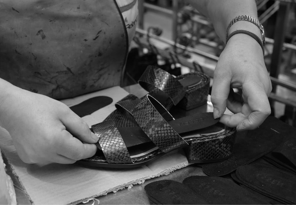 Thus, ESSEN was born, named for wardrobe “essentials” that are made in a thoughtful, decelerated manner that goes far beyond the normal practice of sustainability. Embedded gently into the narrative is the brand’s ability to navigate the incongruities that exist throughout the global supply chain. Muijs devotes herself to experiencing the workrooms and the people - many arising from generations of Italian, Portuguese, and Spanish artisans - who she collaborates with to select and cut the leather, engineer the lasts, and determine how best to go about things. The business revolves around small-batch production and on-demand manufacturing processes enabling them to accurately calculate demand, to make only what sells, minimizing waste and inventory surpluses; Muijs calculates a dramatic 90% waste reduction. Though she concedes that producing footwear that is truly sustainable is largely unattainable today, ESSEN continues to design footwear for a future where producing better goods at a more conscious pace will be the prevalent must-have trend.