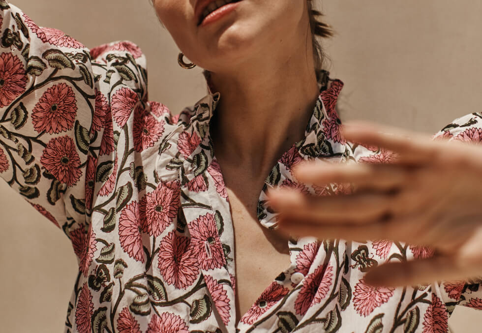 Since launching in the Spring of 2019, Jenna Nankin has created a clothing line that combines two worlds: the future, a desire for a ubiquitous, sustainable way of living hereafter; and the primitive, the incorporation of natural beauty in ways that are harmonious with the planet. Through Future Primitive, the former fashion insider designs clothing for a worldly and discerning consumer--handwoven silks and fine cottons are laden with hand-applied block prints and expertly tailored by celebrated artisans in Jaipur, the capital city of North India’s Rajasthan state. Combining traditional, down-to-earth methods with contemporary standards, the city’s textile makers have gained widespread recognition for their use of the highest quality natural resources and their steadfast preservation of ancient textile practices.