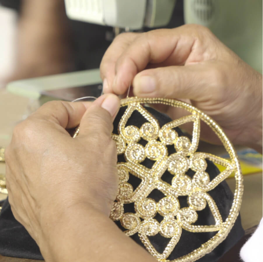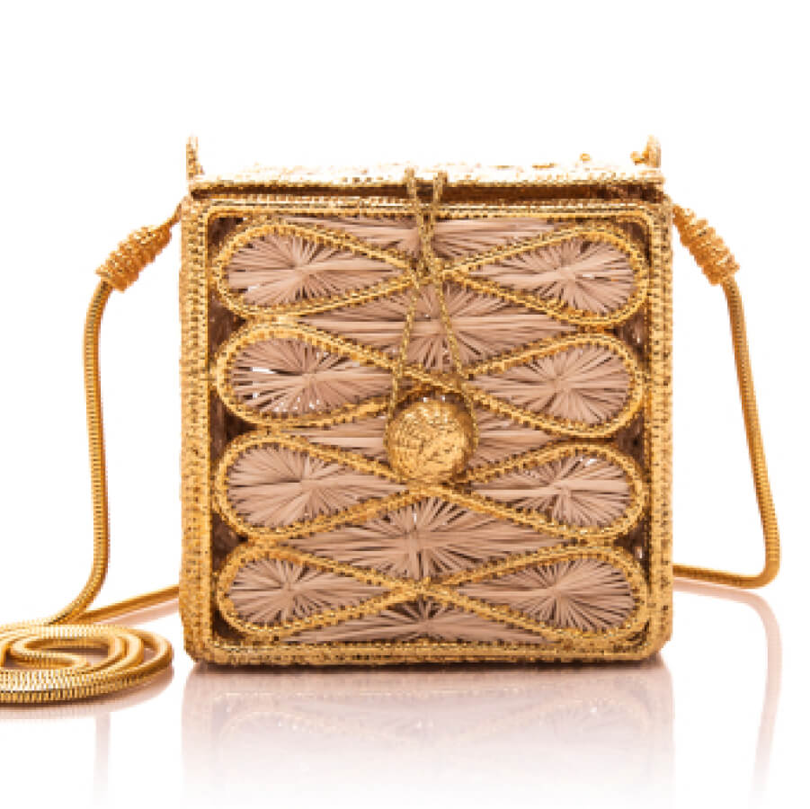 Each Magnetic Midnight piece is thoughtfully designed and handmade in Colombia. Their handbags and headpieces require a long fabrication process that involves a variety of craftsmen from around the country. The structures of the pieces are created by a small family of lamp makers outside Bogota; these are then woven with iraca palm leaves by artisans in UsiacurÃ, a small town near Colombia's Caribbean coast. Meanwhile, the pompoms that adorn them are crafted by the Wayuu tribe of La Guajira and brought to the capital, where the complex gold dipping process takes place. A love and respect for traditional crafts and a desire to support artisan communities and small businesses is the ultimate vision behind Magnetic Midnight and a constant source of inspiration for EchavarrÃa. Only a limited amount of every design is made, and each piece is as unique as the hands that craft it.