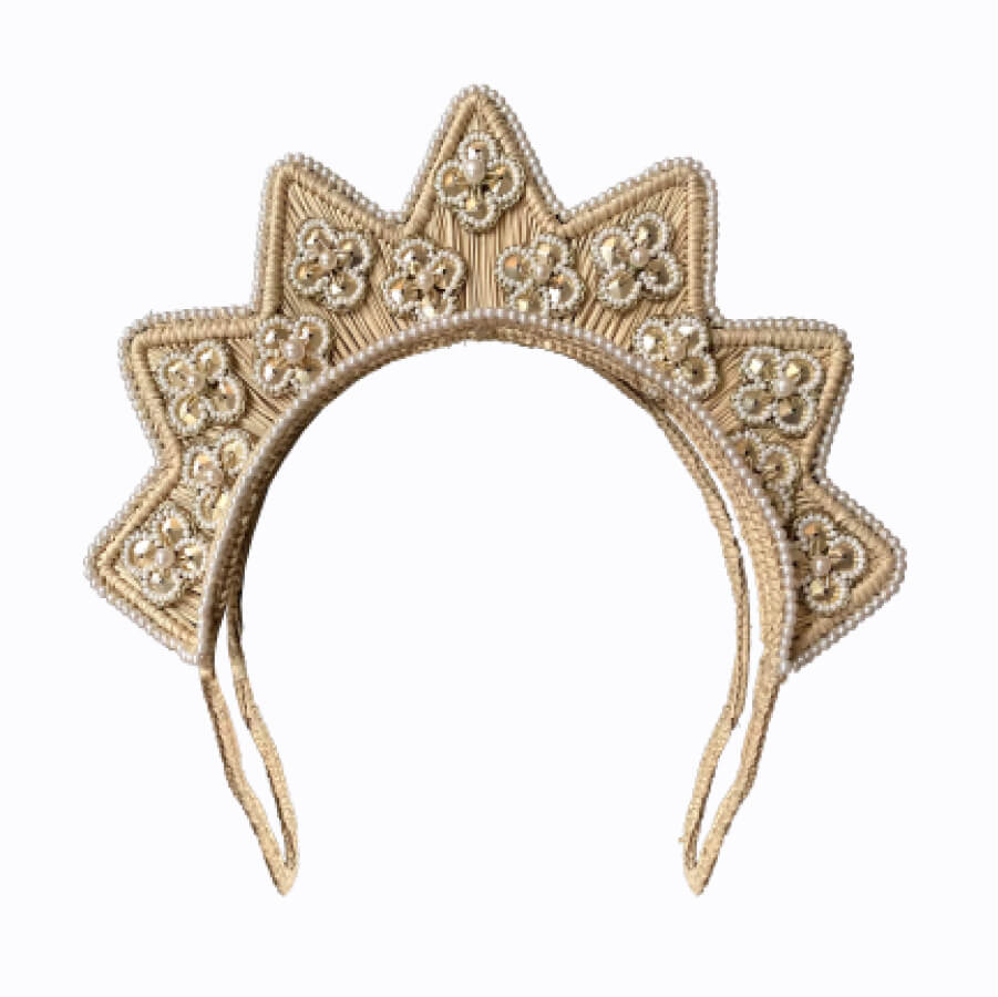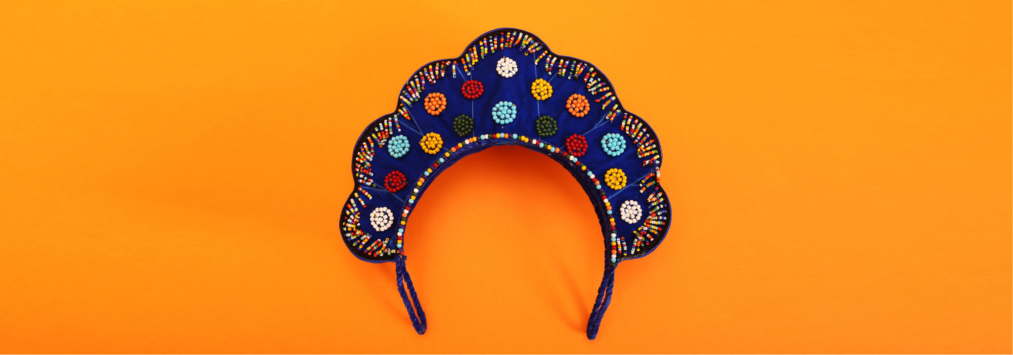 EchavarrÃa’s experience in premier art institutions like Christies and the Guggenheim Museum in New York, and the Musée des Arts Décoratifs, in Paris, cemented her passion for cultural history and traditional costumes and adornments. Her distinct headpieces, imagined as unconventional ‘bijoux de tête,’ are unique statement pieces that reflect a modern aesthetic imbued with a love for heritage and craftsmanship. Aside from her main line, EchavarrÃa creates one-of-a-kind pieces that she assembles in her New York studio. These designs are either too complex to be replicated or they are made up of unique elements like vintage buttons, mirrors, beads and artisanal tassels. The headpieces are Magnetic Midnight’s cornerstones, but the label’s whimsical universe is constantly expanding to include EchavarrÃa’s newest creations.