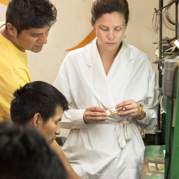 Mónica collaborates closely with a team of artisans from San Juan de Lurigancho, one of Lima’s most underprivileged districts. A firm believer in building a more equitable society, she works with a Fairtrade International-certified atelier that not only creates employment opportunities for the community, but also offers a safe work environment where younger generations can learn to master traditional crafts. These are techniques that have been mostly unaltered for thousands of years, but by merging her innovative design ideas with the artisans’ ancestral know-how, Mónica hopes to imbue them with new value, ultimately helping to safeguard their survival. Each new creation entails research, experimentation and a lengthy development process that ensures the quality and durability of every piece. This pursuit of permanence is at the core of Mónica’s design mantra: she believes that to produce sustainably one must create timeless pieces that can be worn forever.