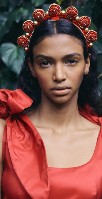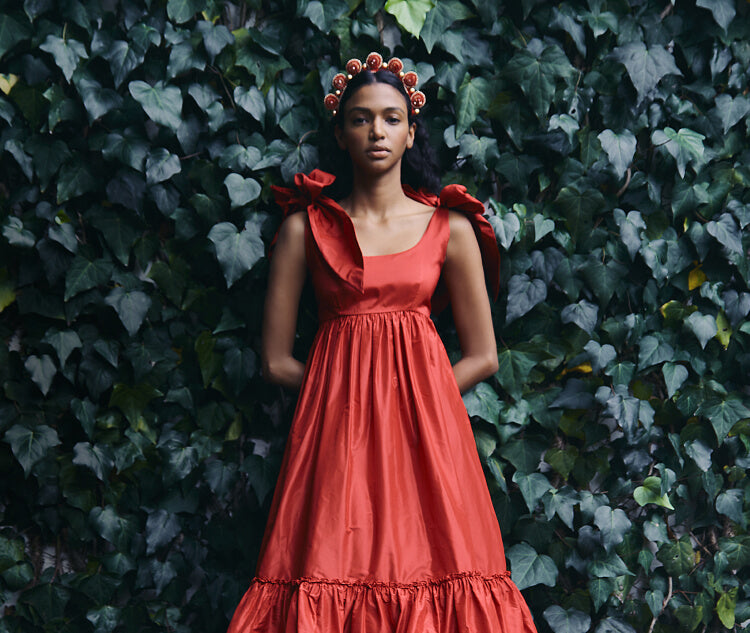 Our DWARMIS Cora Skirt in Navy is a signature piece designed to flatter every woman, featuring an adjustable waist and eight functional corozo buttons. Crafted from fluid jacquard, it transitions effortlessly from day to night. Pair it with our Lala Top for a refined, coordinated look. Handcrafted in New York City.